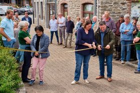 Discours d’inauguration par Serge ; coupe du ruban par les 2 bourgmestres ; réception à la Tannerie, réception qui permit de nombreux et fructueux échanges notamment avec les autorités communales.